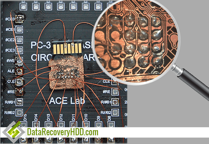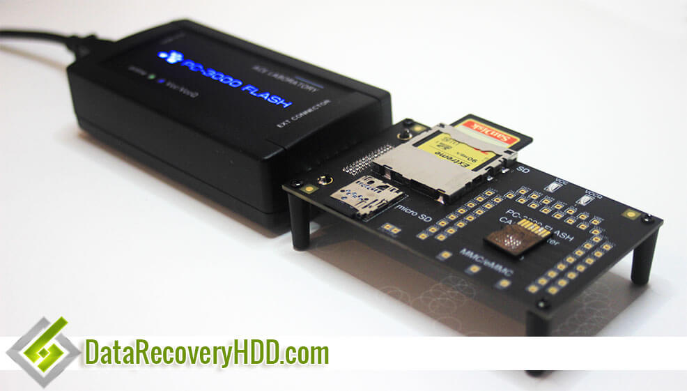 In the image below, you can see how an SD card is connected to an specialized equipment to recover the data of the memory, which has suffered a damage in the controller.
